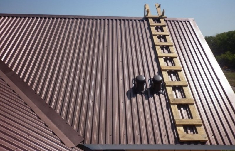 На некрутых крышах с небольшим уклоном профнастил укладывают с нахлёстом в два ребра.