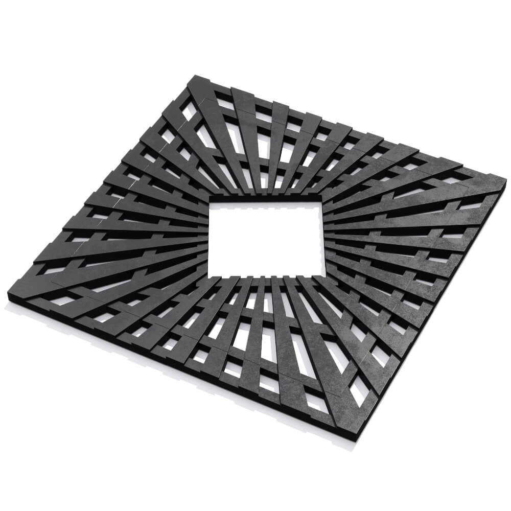 Прикорневая решётка Atmosphere Черная для городского благоустройства в Барнауле. Состоит из 4-х отдельных элементов в форме лучей. Скрытая стыковка секций является особенностью данной модели и создаёт целостный вид. Решетка укладывается на почву вокруг деревьев, чтобы обеспечить благоприятные условия для их произрастания. Использование приствольных решёток является важным моментом при благоустройстве городских улиц, парков и скверов. Они способствуют сохранению естественной рыхлости почвы, защите корневой системы растений и свободному проникновению влаги, воздуха и солнечных лучей.