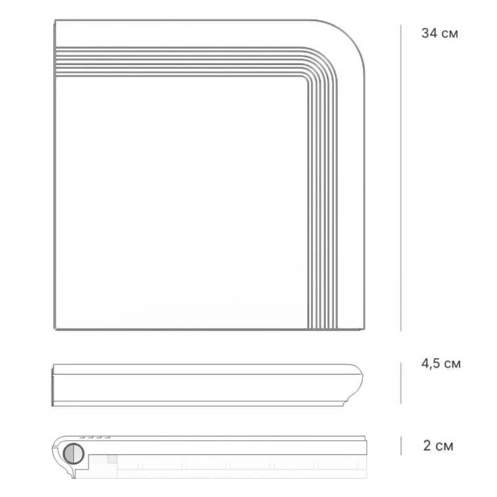 Ступень угловая Verona из искусственного камня для ступеней крыльца, размеры 340х340х20мм цвет Мраморный.
