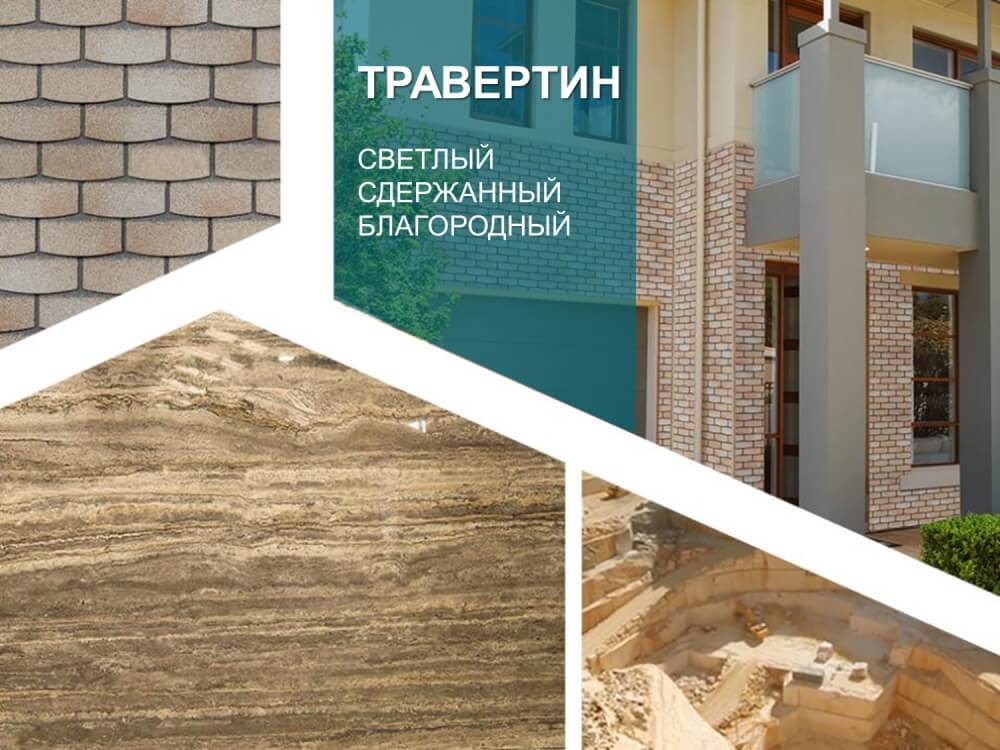 Благородные светлые оттенки бежевого травертина визуально сделают строение легким и воздушным. Идеально подходит для домов с классической архитектурой, которым присущи сдержанные геометрические формы и такие же цветовые сочетания.