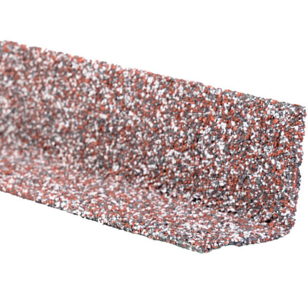 Внутренний уголок изготовлен из высокопрочного стального листа толщиной 0,45 мм. С обоих сторон изделие покрыто алюмоцинковым сплавом. Покрытие внешней стороны – базальтовый гранулят. Уголок не подвержен коррозии и не будет окисляться даже в месте среза при монтаже, а также в случае появления царапин на слое.