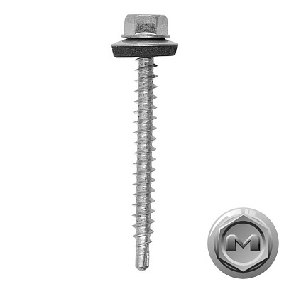 Кровельные саморезы Daxmer (Даксмер) по дереву Оцинкованные 4,8*50мм: цинковое антикоррозийное покрытие 12 мкм обеспечивает длительный срок службы саморезов (не менее 25 лет). Специальная металлическая шайба с ЕРDМ - уплотнителем обеспечивает плотное прилегание профилированного металла (кровли) к деревянной обрешетке, а также препятствует попаданию влаги.