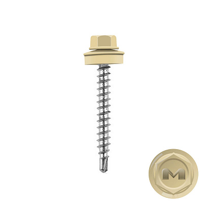 Кровельные саморезы Daxmer (Даксмер) по дереву цветом RAL1014 Бежевый 4,8*35мм окрашиваются УФ-стойкой полиэфирной порошковой краской. Цинковое антикоррозийное покрытие обеспечивает длительный срок службы саморезов (не менее 25 лет). Специальная металлическая шайба с ЕРDМ - уплотнителем обеспечивает плотное прилегание профилированного металла (кровли) к деревянной обрешетке, а также препятствует попаданию влаги.