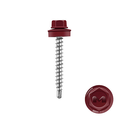 Кровельные саморезы Daxmer (Даксмер) по дереву цветом RAL3005 Красное вино 4,8*35мм окрашиваются УФ-стойкой полиэфирной порошковой краской. Цинковое антикоррозийное покрытие обеспечивает длительный срок службы саморезов (не менее 25 лет). Специальная металлическая шайба с ЕРDМ - уплотнителем обеспечивает плотное прилегание профилированного металла (кровли) к деревянной обрешетке, а также препятствует попаданию влаги.