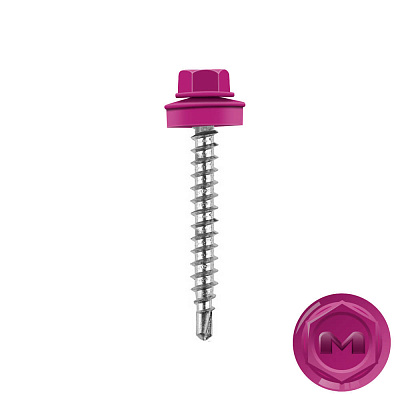 Кровельные саморезы Daxmer (Даксмер) по дереву цветом RAL4006 Пурпурный 4,8*35мм окрашиваются УФ-стойкой полиэфирной порошковой краской. Цинковое антикоррозийное покрытие обеспечивает длительный срок службы саморезов (не менее 25 лет). Специальная металлическая шайба с ЕРDМ - уплотнителем обеспечивает плотное прилегание профилированного металла (кровли) к деревянной обрешетке, а также препятствует попаданию влаги.