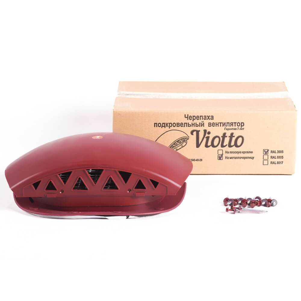 Подкровельный вентилятор "Черепаха" Viotto RAL 3005 Красное Вино для кровли из металлочерепицы в Барнауле