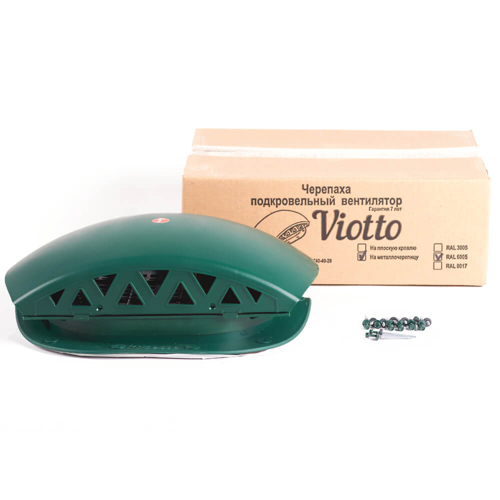 Подкровельный вентилятор "Черепаха" Viotto RAL 6005 Зеленый Мох для кровли из металлочерепицы в Барнауле