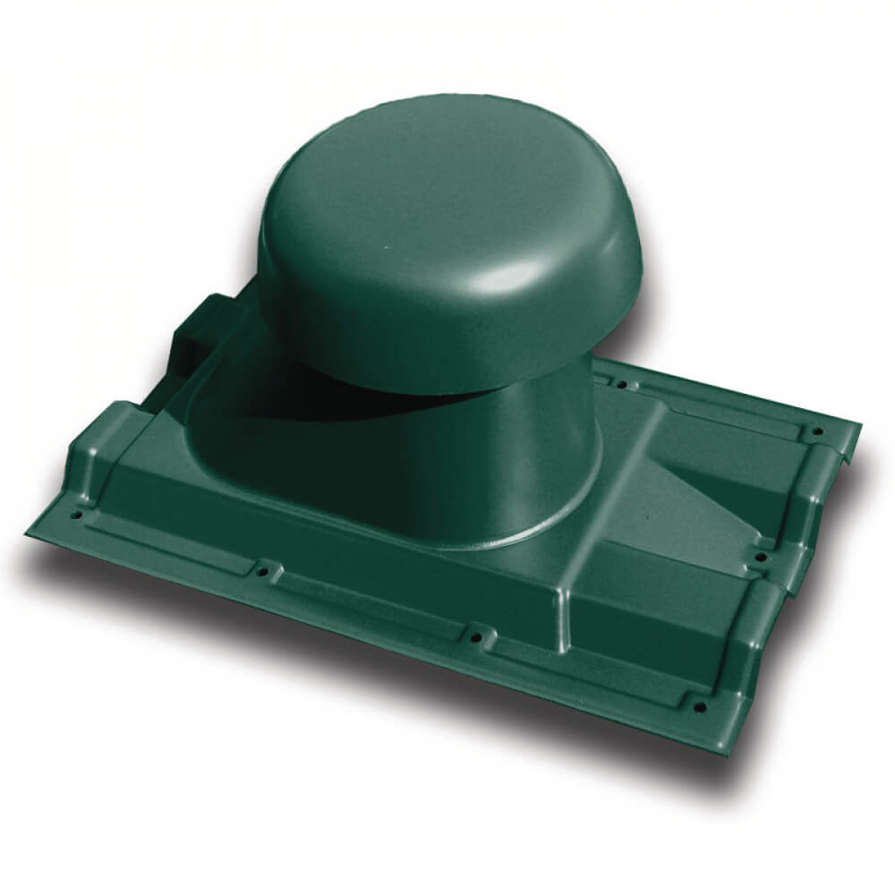 Выход вентиляции (дефлектор) универсальный диаметр 110 мм высотой 200мм зеленый для кровли из профнастила с профилем С-21 в Барнауле.