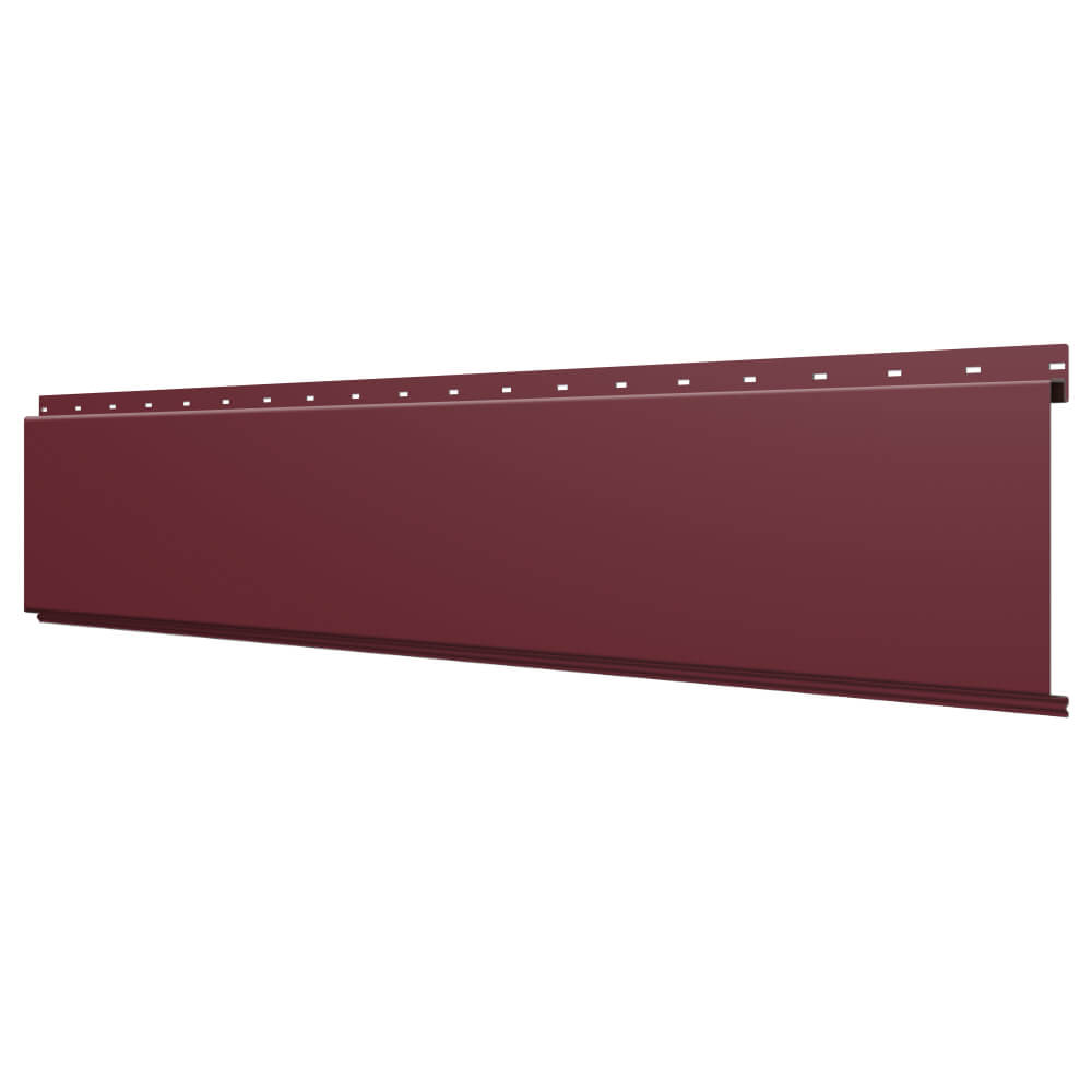 Линеарная потолочно-стеновая панель ГЛАДКАЯ цвет RAL3005 Красное Вино применяется в качестве софитов для подшивы крыши, наружной и внутренней отделки потолков, стен, фронтонов фасада дома в Барнауле.