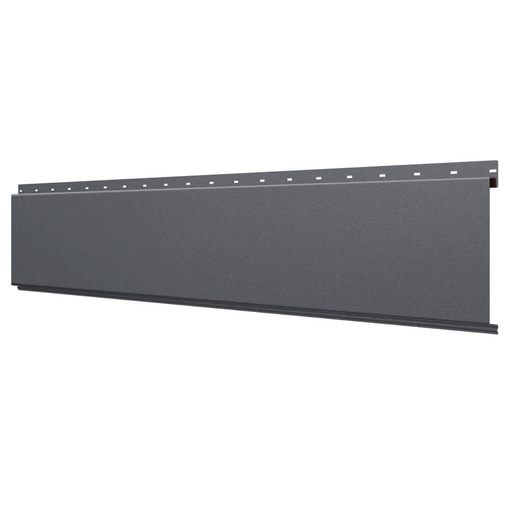 Линеарная потолочно-стеновая панель ГЛАДКАЯ цвет RAL7024 Серый Графит Стальной Бархат применяется в качестве софитов для подшивы крыши, наружной и внутренней отделки потолков, стен, фронтонов фасада дома в Барнауле.