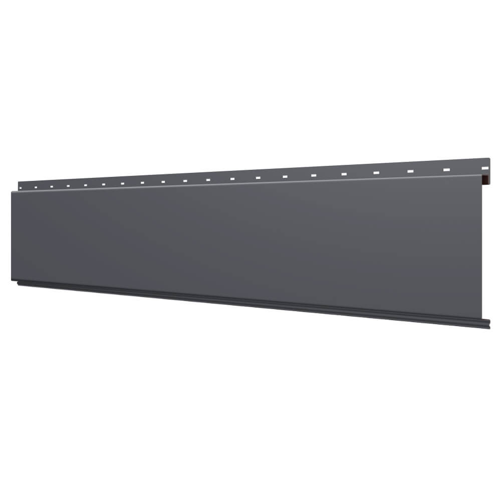 Линеарная потолочно-стеновая панель ГЛАДКАЯ цвет RAL7024 Серый Графит применяется в качестве софитов для подшивы крыши, наружной и внутренней отделки потолков, стен, фронтонов фасада дома в Барнауле.