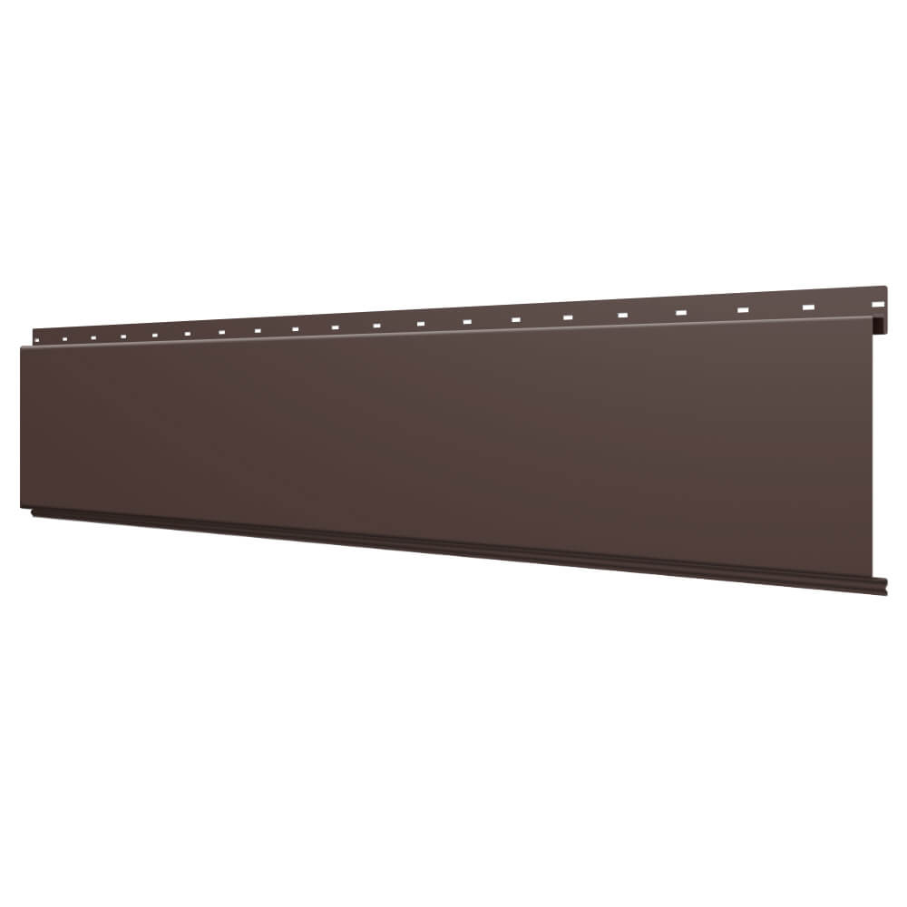 Линеарная потолочно-стеновая панель ГЛАДКАЯ цвет RAL8017 Шоколад применяется в качестве софитов для подшивы крыши, наружной и внутренней отделки потолков, стен, фронтонов фасада дома в Барнауле.