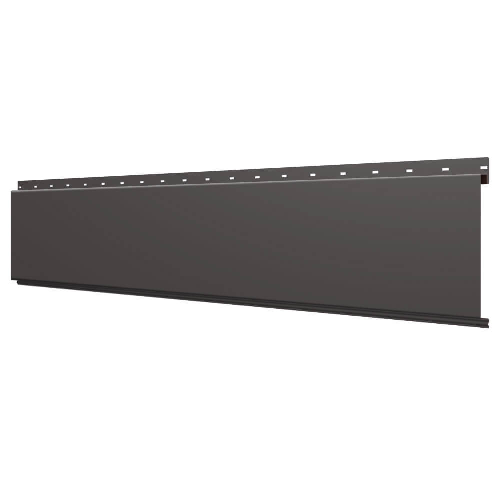 Линеарная потолочно-стеновая панель ГЛАДКАЯ цвет RAL8019 Темный Шоколад применяется в качестве софитов для подшивы крыши, наружной и внутренней отделки потолков, стен, фронтонов фасада дома в Барнауле.