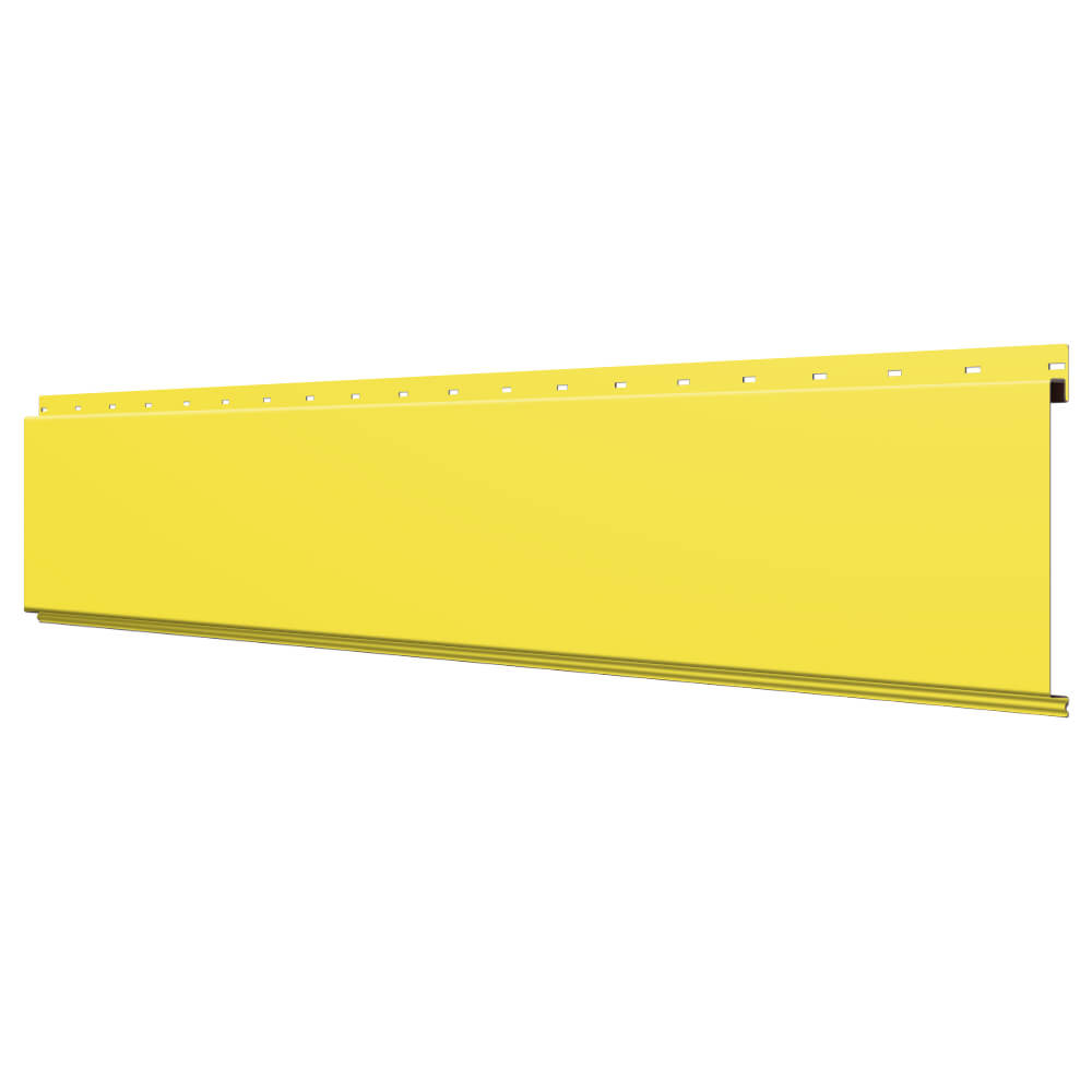 Линеарная потолочно-стеновая панель ГЛАДКАЯ цвет RAL1018 Желтый применяется в качестве софитов для подшивы крыши, наружной и внутренней отделки потолков, стен, фронтонов фасада дома в Барнауле.