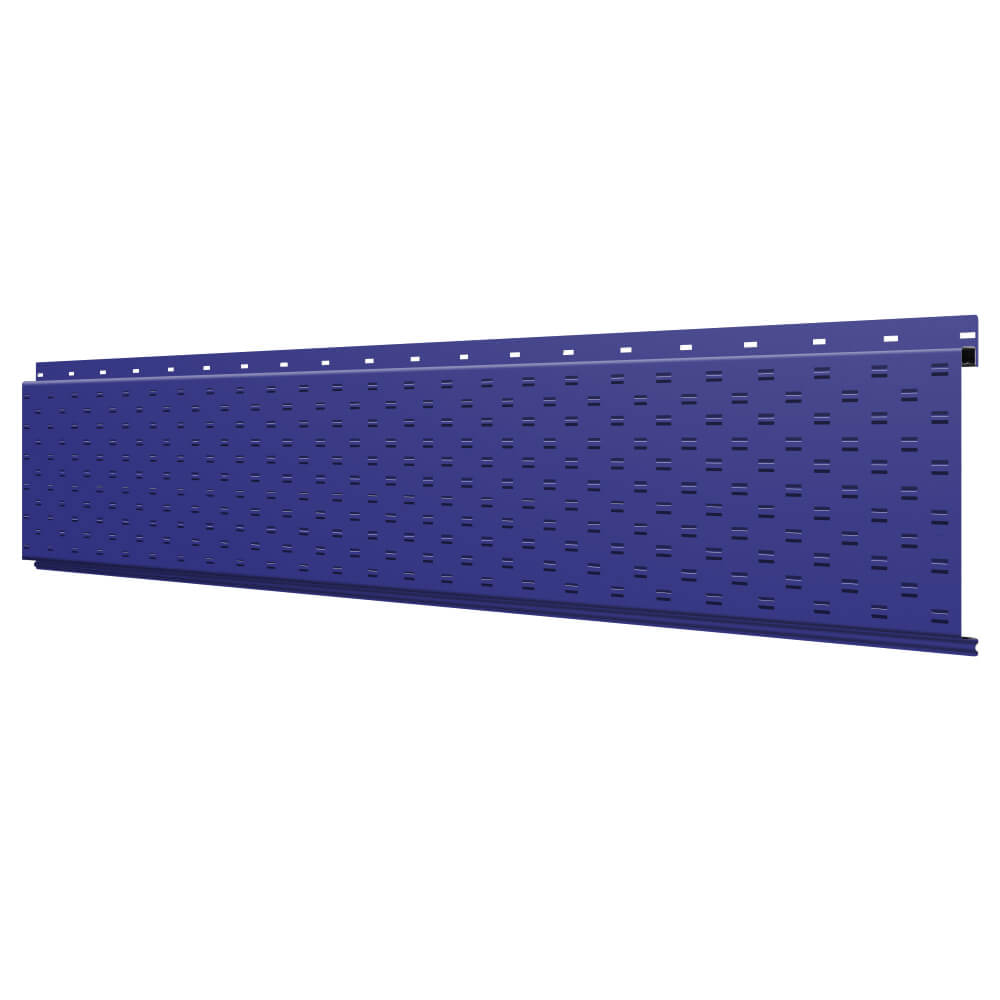 Линеарная потолочно-стеновая панель с ПЕРФОРАЦИЕЙ для вентиляции цвет RAL5002 Синий Ультрамарин применяется в качестве софитов для подшивы крыши, наружной и внутренней отделки потолков, стен, фронтонов фасада дома в Барнауле.