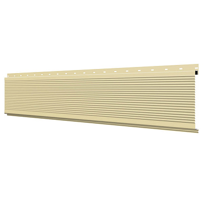Линеарная потолочно-стеновая панель РИФЛЕНАЯ усиленная цвет RAL1014 Бежевый применяется в качестве софитов для подшивы крыши, наружной и внутренней отделки потолков, стен, фронтонов фасада дома в Барнауле.
