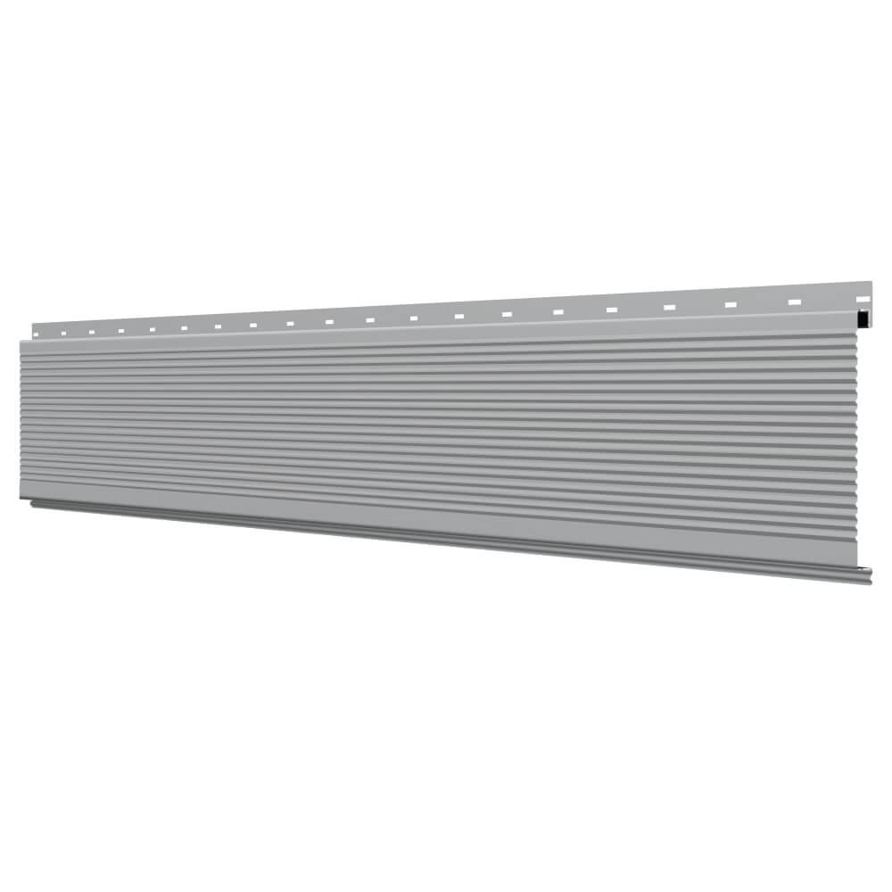 Линеарная потолочно-стеновая панель РИФЛЕНАЯ усиленная цвет RAL7004 Серый применяется в качестве софитов для подшивы крыши, наружной и внутренней отделки потолков, стен, фронтонов фасада дома в Барнауле.
