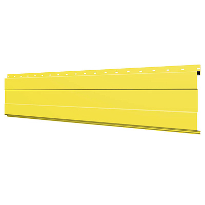 Линеарная потолочно-стеновая панель с ПОЛОСОЙ усиленная цвет RAL1018 Желтый применяется в качестве софитов для подшивы крыши, наружной и внутренней отделки потолков, стен, фронтонов фасада дома в Барнауле.