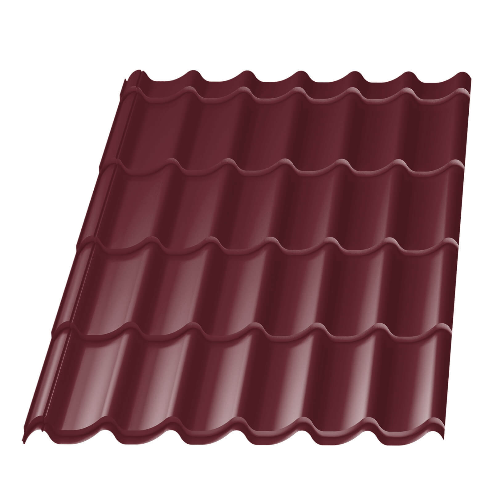 Металлическая черепица Меркурий цвет RAL 3005 Красное Вино имеет профиль внешне на кровле напоминающий классическую керамическую черепицу. Меркурий — это обновленный аналог профиля металлической черепицы для кровли крыши. Форма профиля имеет богатый внешний вид напоминающий небольшие набегающие волны. Лучшие показатели герметизации сделали профиль Меркурий гарантом стабильной и долговременной службы на крышах в Барнауле. Данный профиль отличается не только своим качеством и практичностью, но и благородным внешним видом.