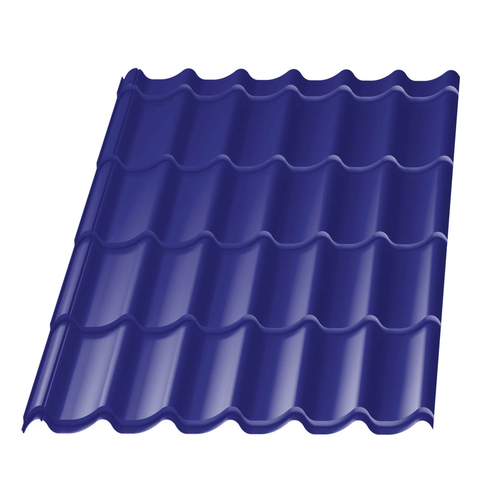 Металлическая черепица Меркурий цвет RAL 5002 Синий Ультрамарин имеет профиль внешне на кровле напоминающий классическую керамическую черепицу. Меркурий — это обновленный аналог профиля металлической черепицы для кровли крыши. Форма профиля имеет богатый внешний вид напоминающий небольшие набегающие волны. Лучшие показатели герметизации сделали профиль Меркурий гарантом стабильной и долговременной службы на крышах в Барнауле. Данный профиль отличается не только своим качеством и практичностью, но и благородным внешним видом.