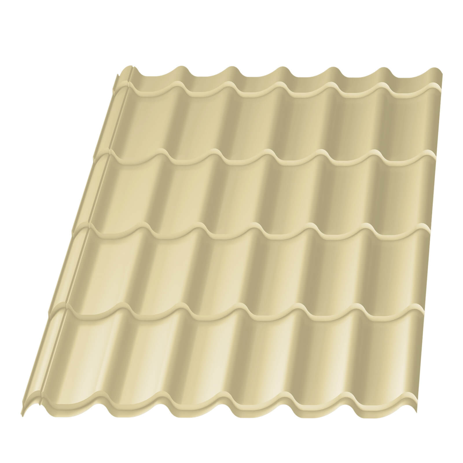 Металлическая черепица Меркурий цвет RAL 1014 Бежевый имеет профиль внешне на кровле напоминающий классическую керамическую черепицу. Меркурий — это обновленный аналог профиля металлической черепицы для кровли крыши. Форма профиля имеет богатый внешний вид напоминающий небольшие набегающие волны. Лучшие показатели герметизации сделали профиль Меркурий гарантом стабильной и долговременной службы на крышах в Барнауле. Данный профиль отличается не только своим качеством, но и благородным внешним видом.