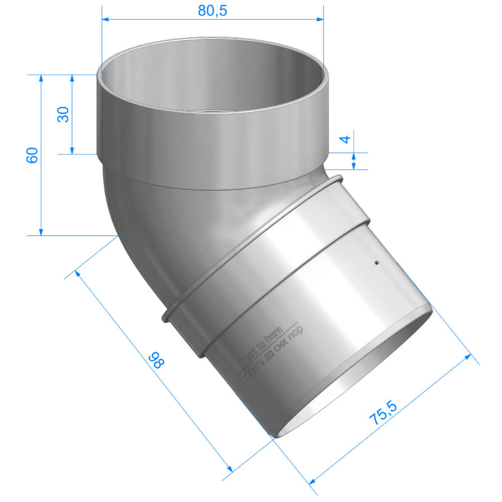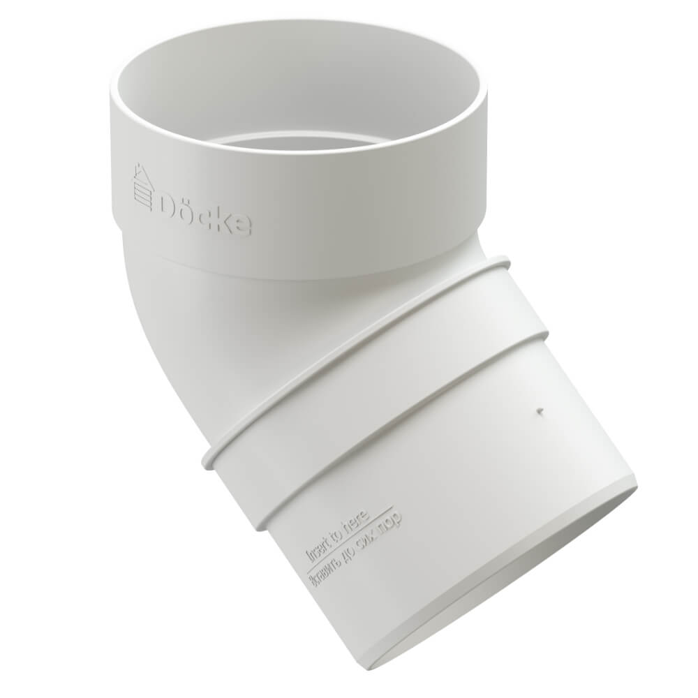 Колено трубы 45 градусов ДЕКЕ STANDARD d80мм цвет RAL 9003 Белый в Барнауле - предназначено для обеспечения перехода от воронки к трубе. Колена соединяют между собой отрезком трубы необходимой длины.