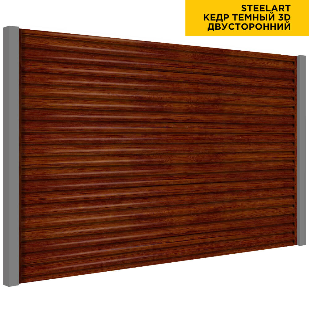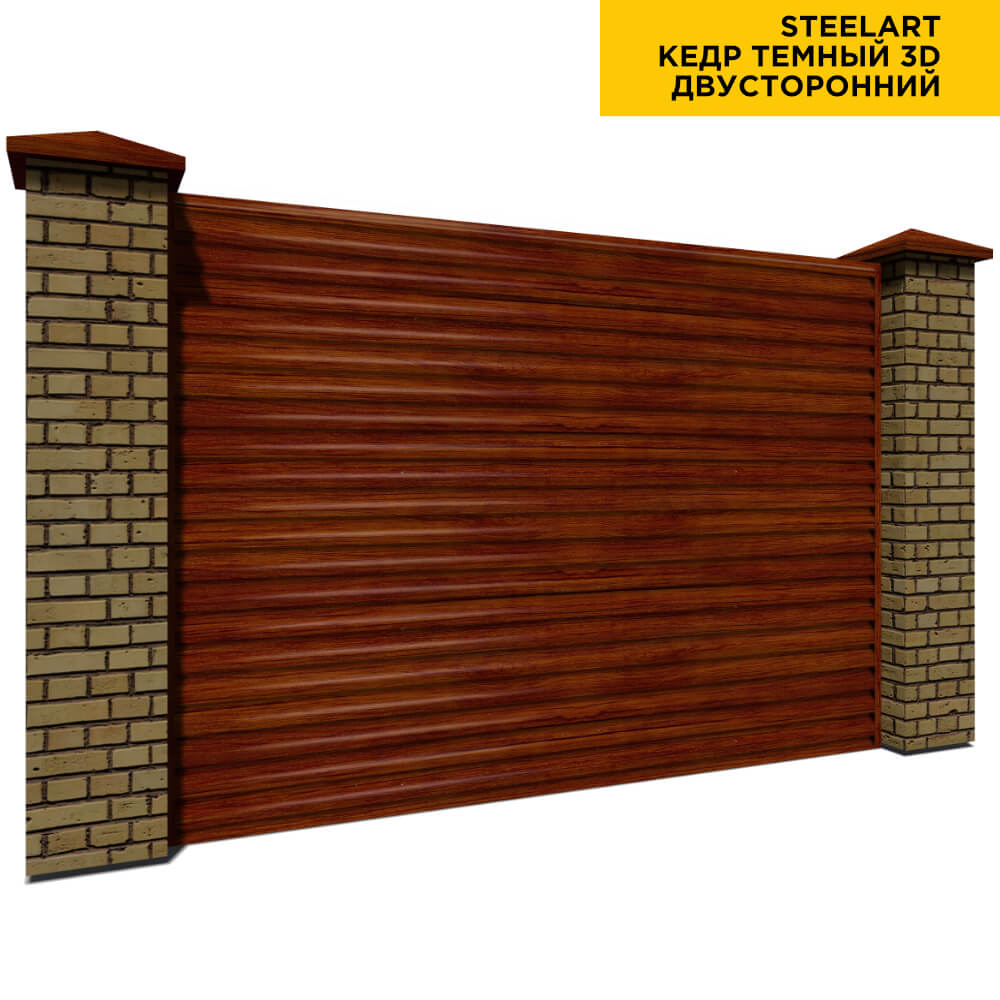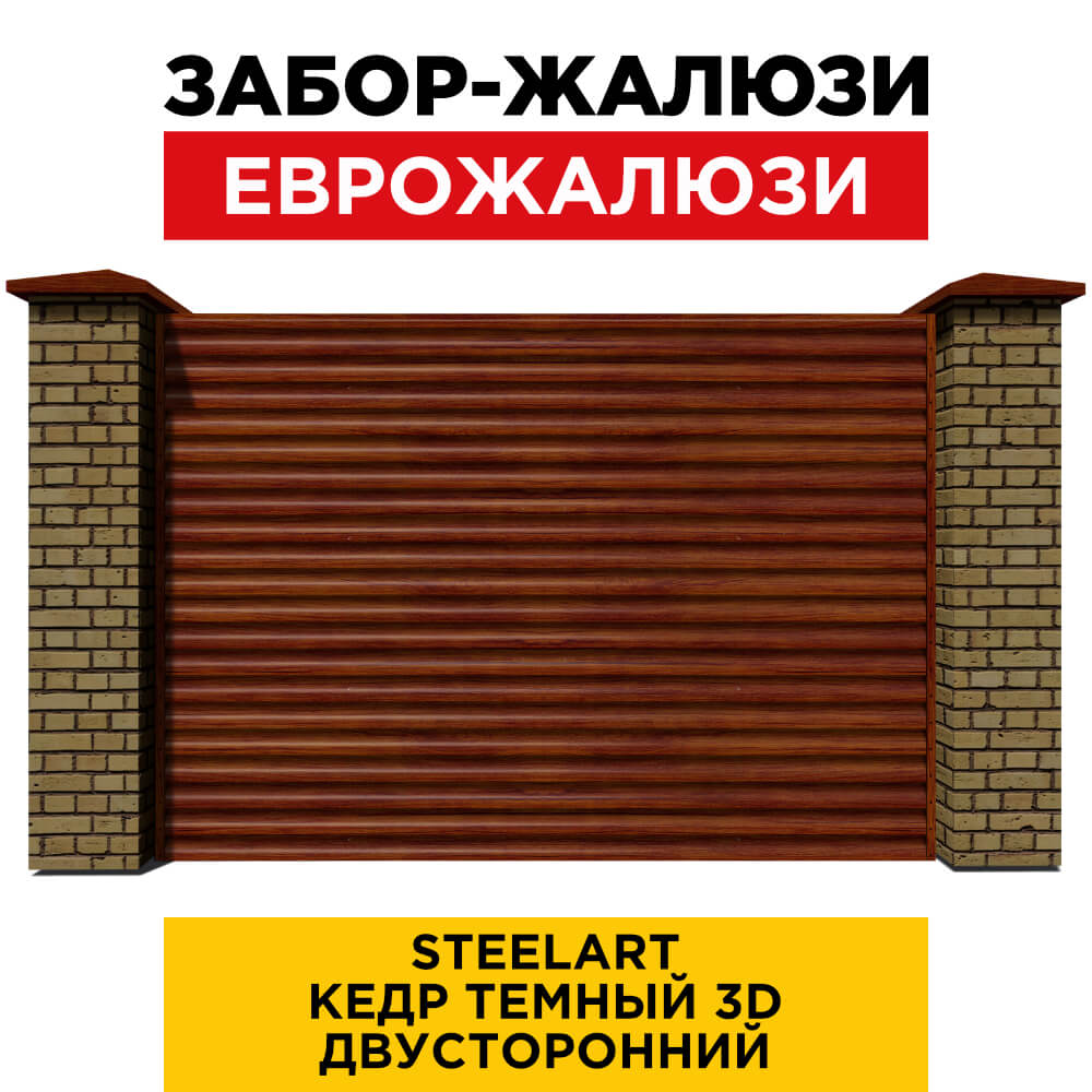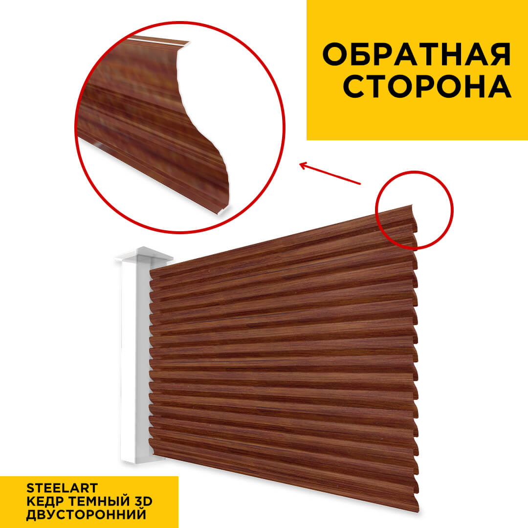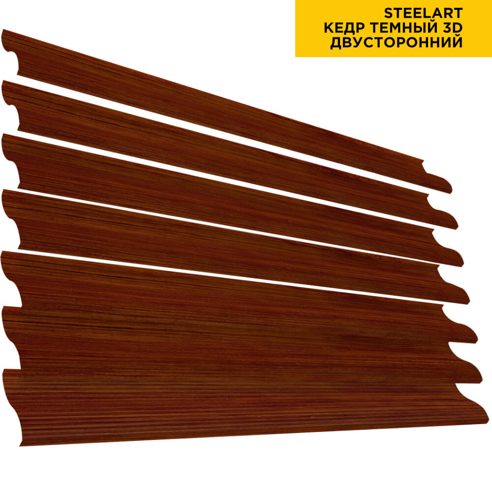 Ламель Еврожалюзи металлическая S-образная, цвет под дерево Кедр Темный 3D SteelArt Россия двухстороннее покрытие, длина любая кратно 1см под заказ - для забора-жалюзи, беседки, перголы в Барнауле