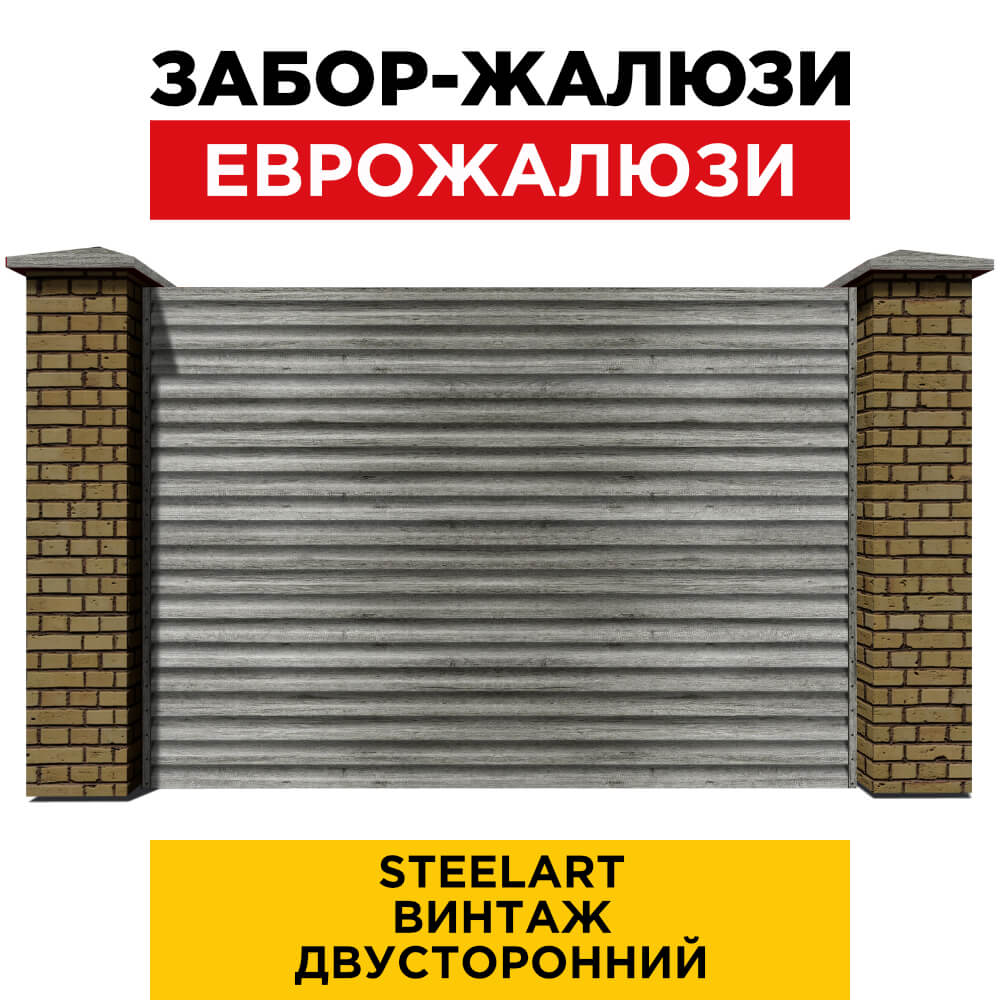 Ламель Еврожалюзи металлическая S-образная, цвет под дерево Винтаж SteelArt Россия двухстороннее покрытие, длина любая кратно 1см под заказ - для забора-жалюзи, беседки, перголы в Барнауле