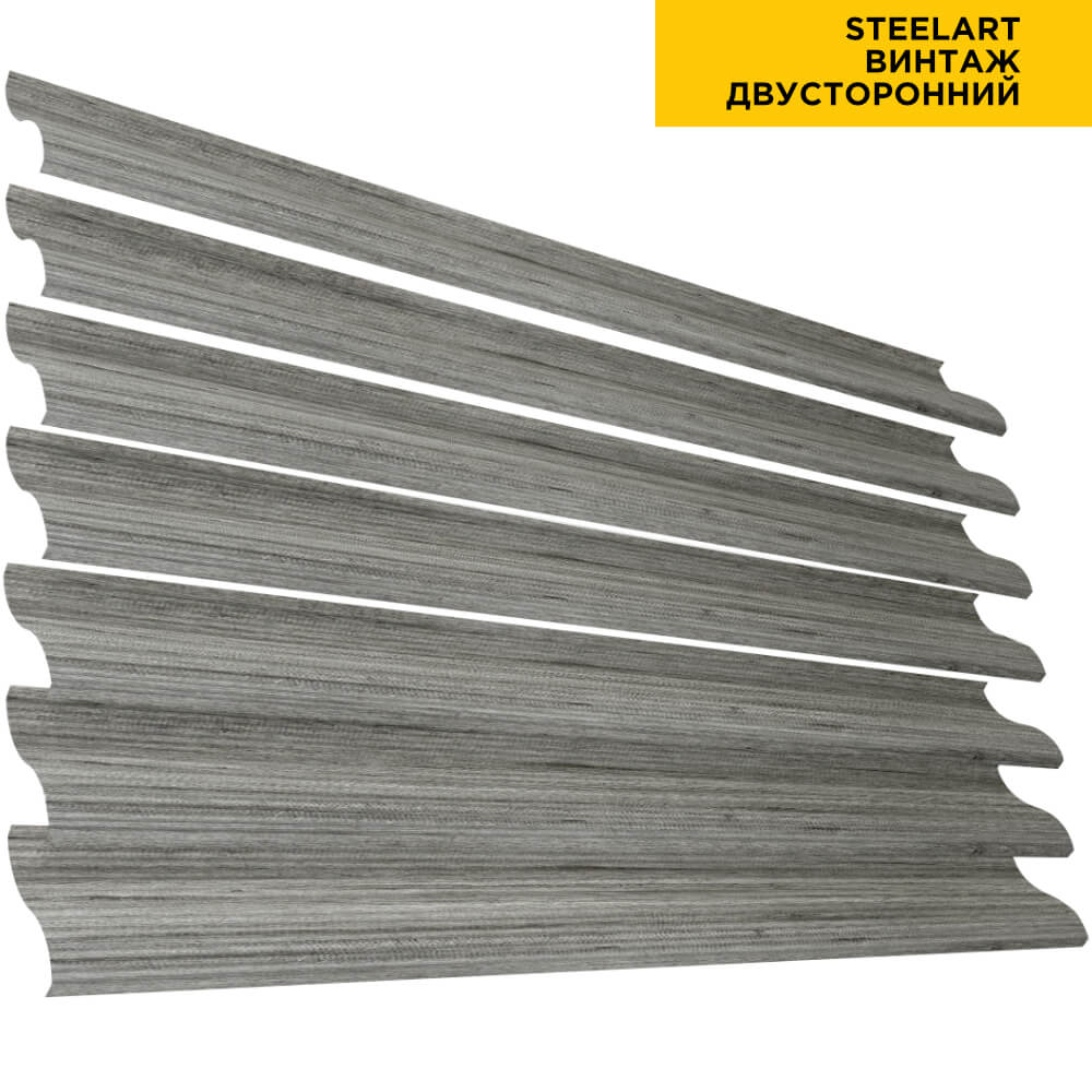 Ламель Еврожалюзи металлическая S-образная, цвет под дерево Винтаж SteelArt Россия двухстороннее покрытие, длина любая кратно 1см под заказ - для забора-жалюзи, беседки, перголы в Барнауле.