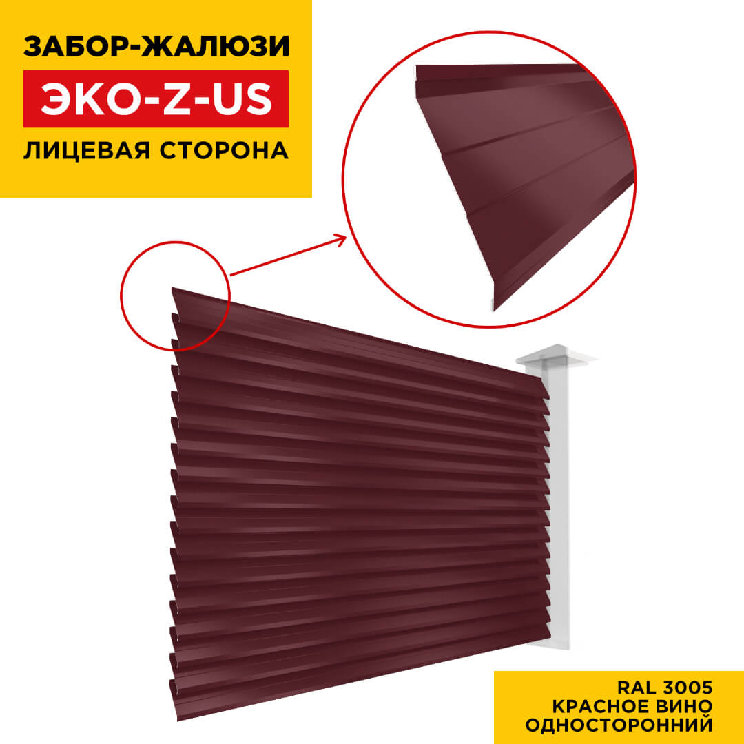 Ламель ЭКО-Z-US усиленная RAL3005 Красное Вино для забора-жалюзи
