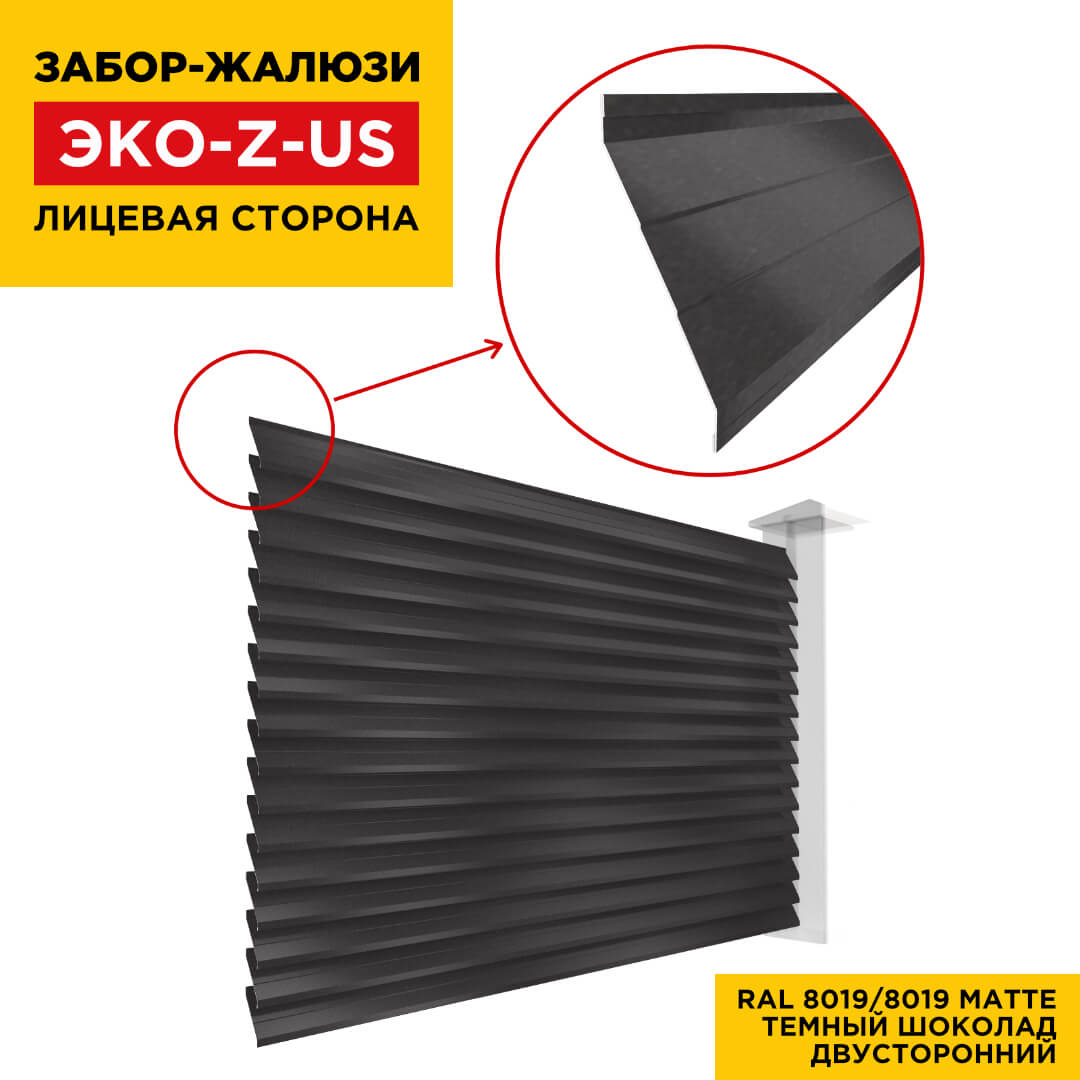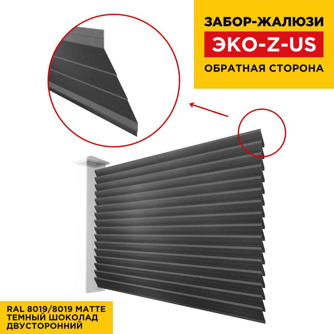 Ламель металлическая Z-образная усиленная ЭКО-Z-US, цвет RAL 8019/8019 МАТТЕ Темный Шоколад матовое двустороннее покрытие, длина любая кратно 1см под заказ - для забора-жалюзи, беседки, перголы в Барнауле
