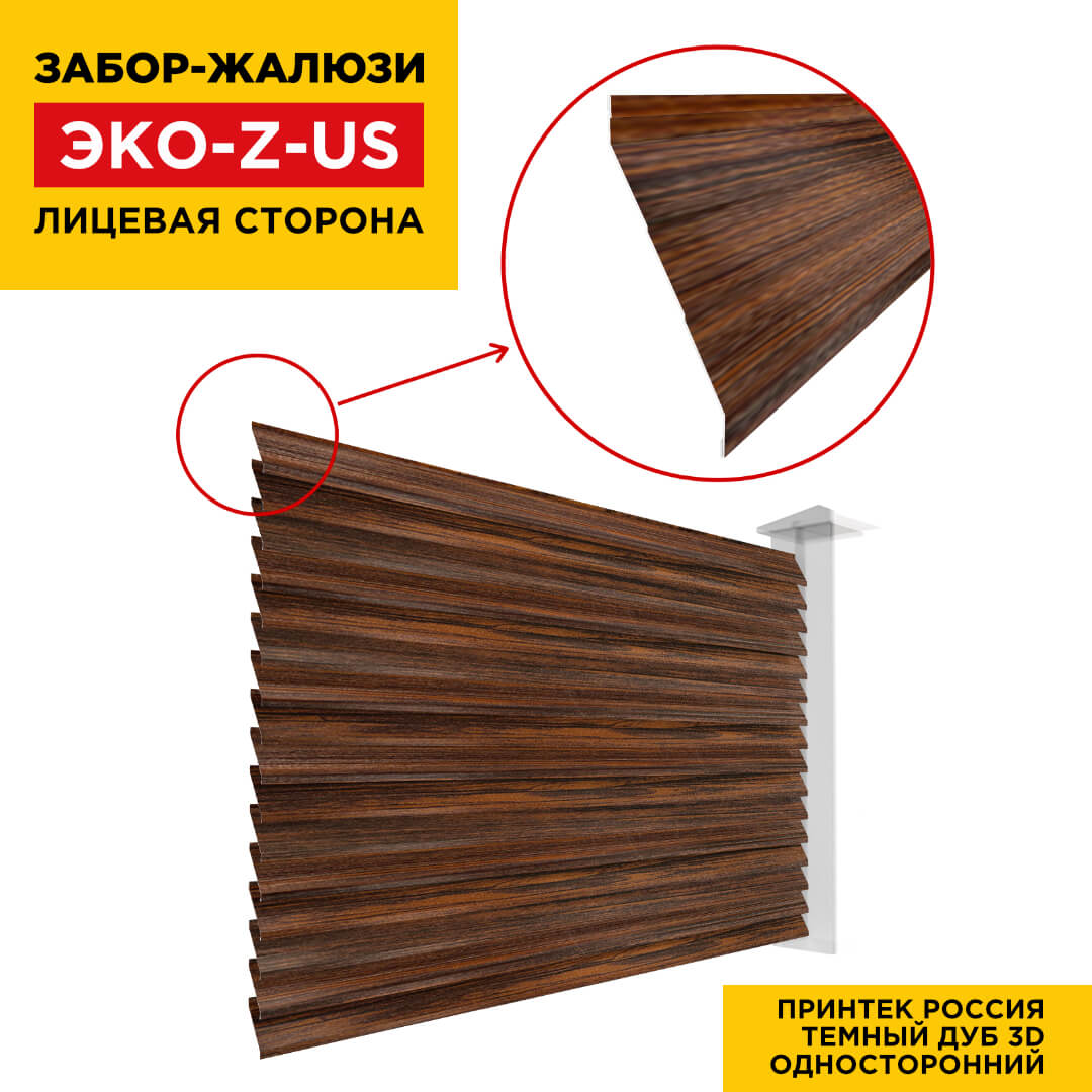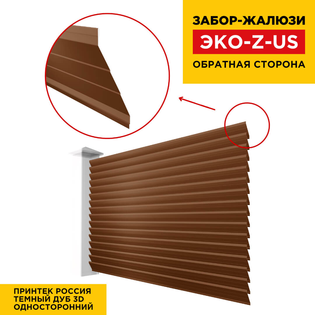 Ламель металлическая Z-образная усиленная ЭКО-Z-US, цвет под дерево Темный Дуб 3D Принтек Россия одностороннее покрытие, длина любая кратно 1см под заказ - для забора-жалюзи, беседки, перголы в Барнауле