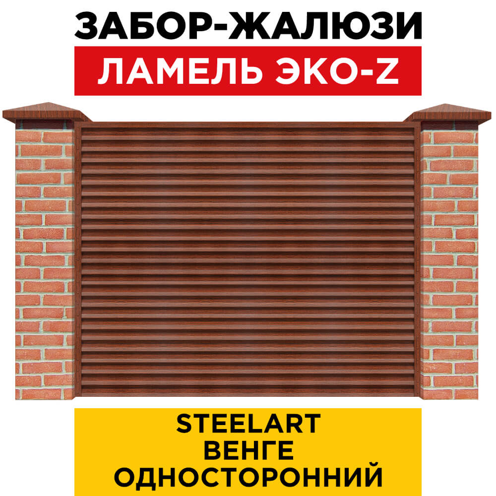 Ламель металлическая Z-образная простая ЭКО-Z, цвет под дерево Венге SteelArt одностороннее покрытие, длина любая кратно 1см под заказ - для забора-жалюзи, беседки, перголы в Барнауле