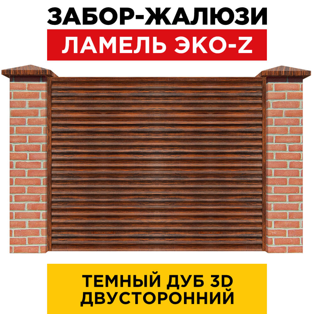 Ламель металлическая Z-образная простая ЭКО-Z, цвет под дерево Темный Дуб 3D Принтек двухстороннее покрытие, длина любая кратно 1см под заказ - для забора-жалюзи, беседки, перголы в Барнауле