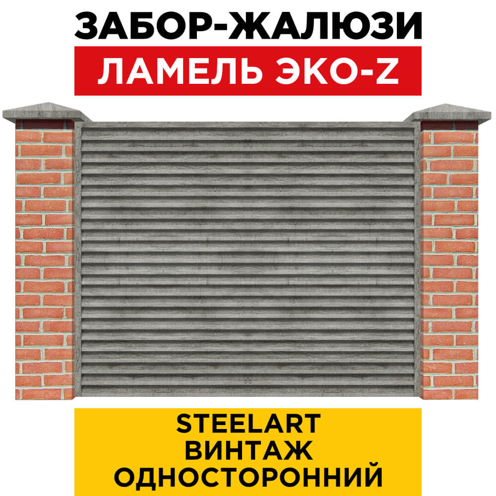 Ламель металлическая Z-образная простая ЭКО-Z, цвет под дерево Винтаж SteelArt одностороннее покрытие, длина любая кратно 1см под заказ - для забора-жалюзи, беседки, перголы в Барнауле