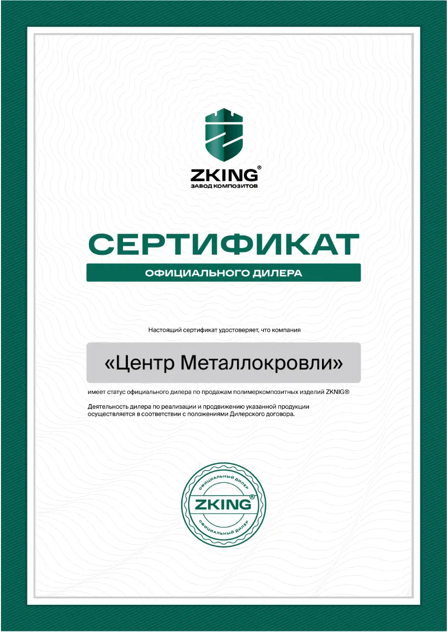 ZKING® Сертификат официального дилера 2025
