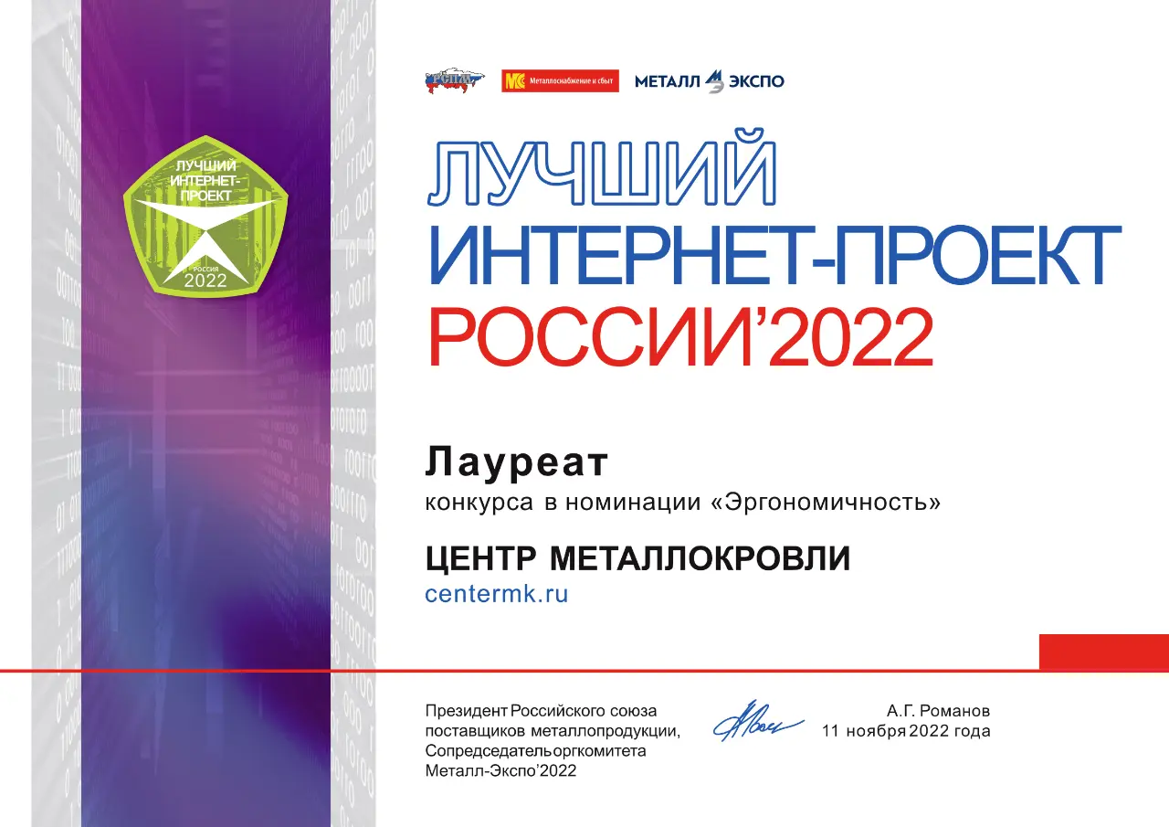 Диплом лауреата конкурса "Лучший интернет-проект России 2022" в номинации "Эргономичность"