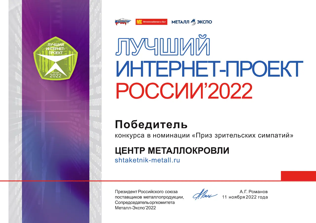 Диплом победителя конкурса "Лучший интернет-проект России 2022" в номинации "Приз зрительских симпатий"
