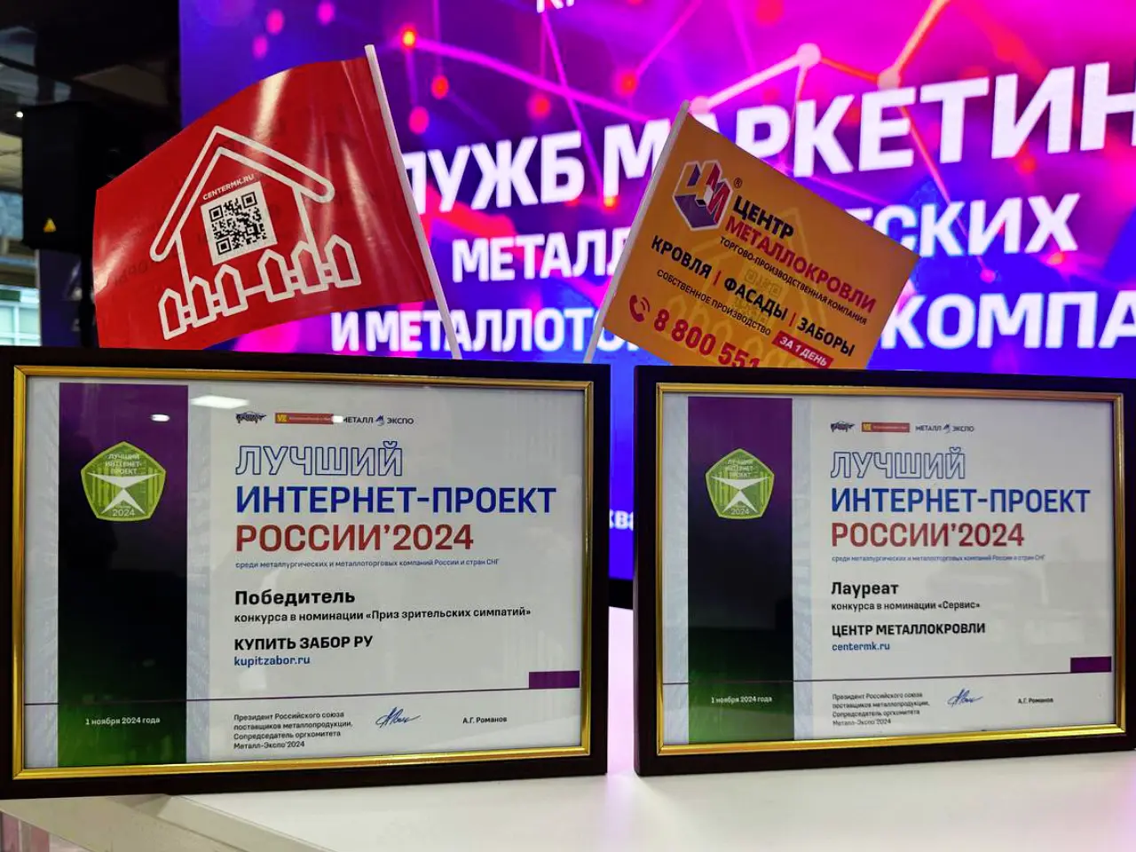 Диплом победителя премии MosBuild Awards 2020 продукт "Штакетник Эко М-образный"