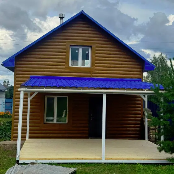 Дом, который не только защищён от времени и непогоды, но и выглядит как воплощение уюта и надежности. Фасад из металлического сайдинга Блок-Хаус под бревно Кедр Темный 3D с покрытием SteelArt в точности передает текстуру и глубину натурального дерева, создавая респектабельный образ дома без лишних забот по уходу. Это современное решение для тех, кто хочет атмосферу теплого деревянного сруба, но ценит долговечность, практичность и достойный внешний вид на десятилетия. Ваш дом будет привлекать взгляды, а вы — радоваться правильному выбору каждый день.