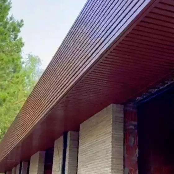 Фото 5 стальная рейка Кедр Темный Дуб 3D подшиве кровли частного дома