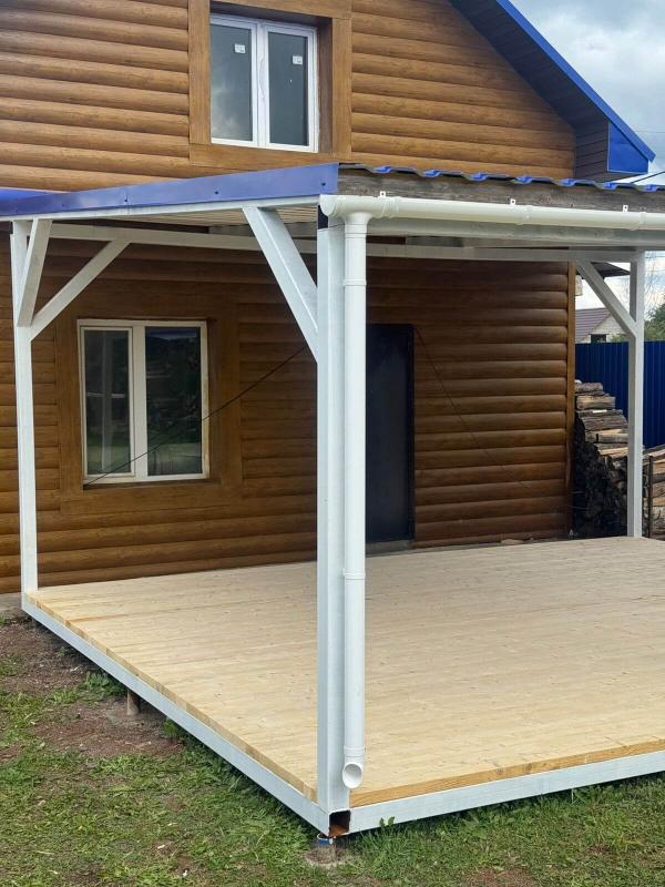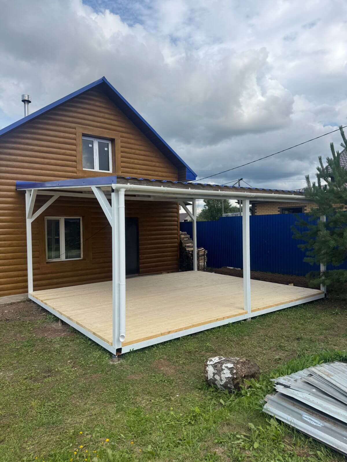 Отделка фасада дома металлическим сайдингом Блок-Хаус