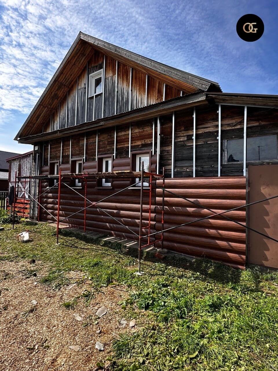 ✅ Модель сайдинга: Бревно Рубленое 4D ✅ Цвет и покрытие: Темный Дуб (Принтек)