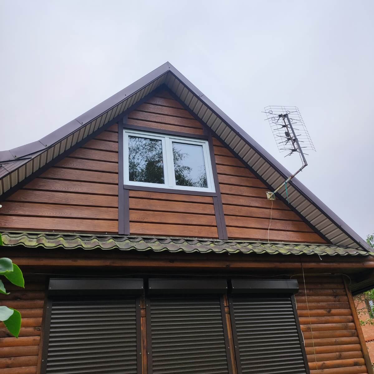 Сайдинг металлический ЕВРО-БРУС под брус дерево Кедр 3D Темный SteelArt фото Центр Металлокровли Фото сайдинга металлического (металлосайдинга) Евро-Брус под брус SteelArt под дерево Кедр Темный для фасада дома