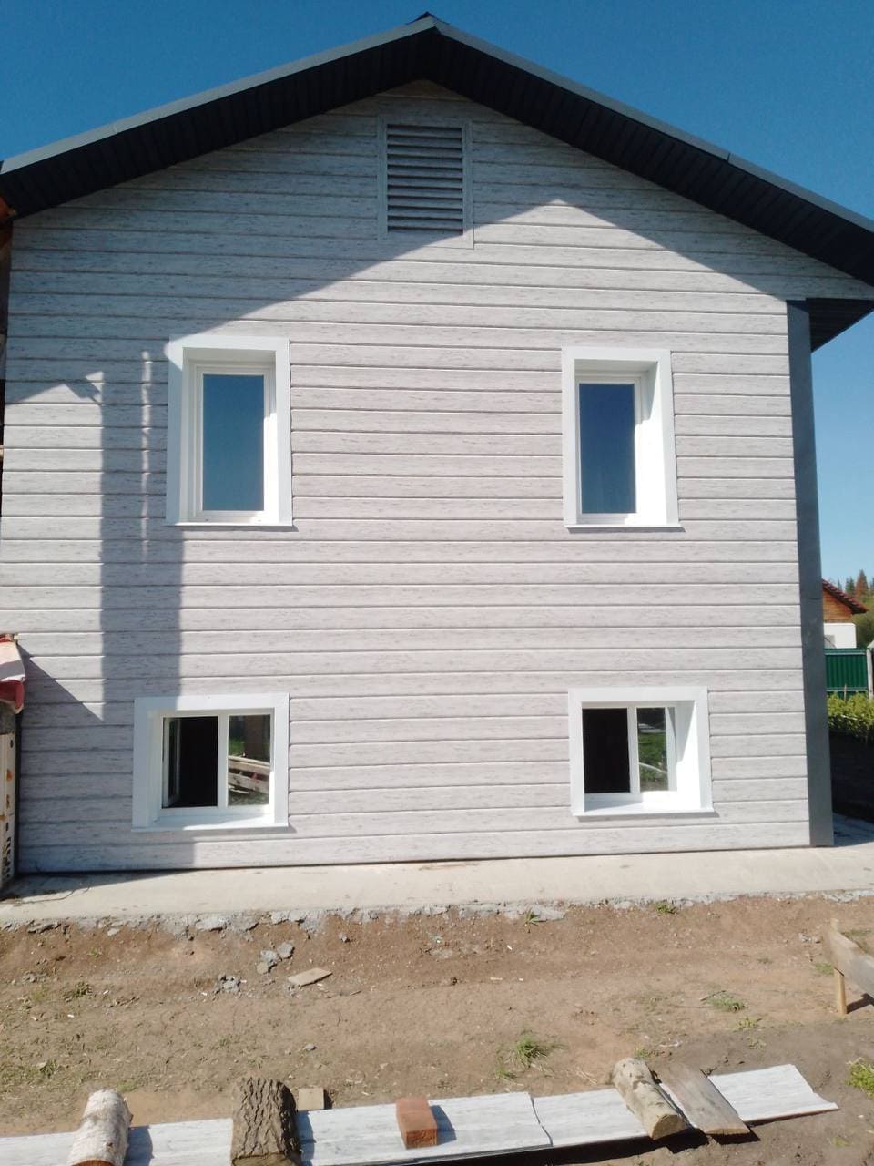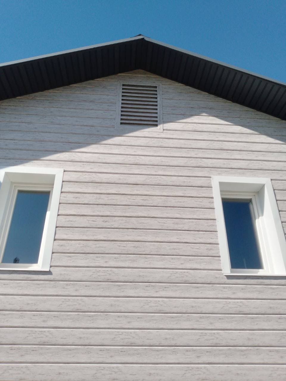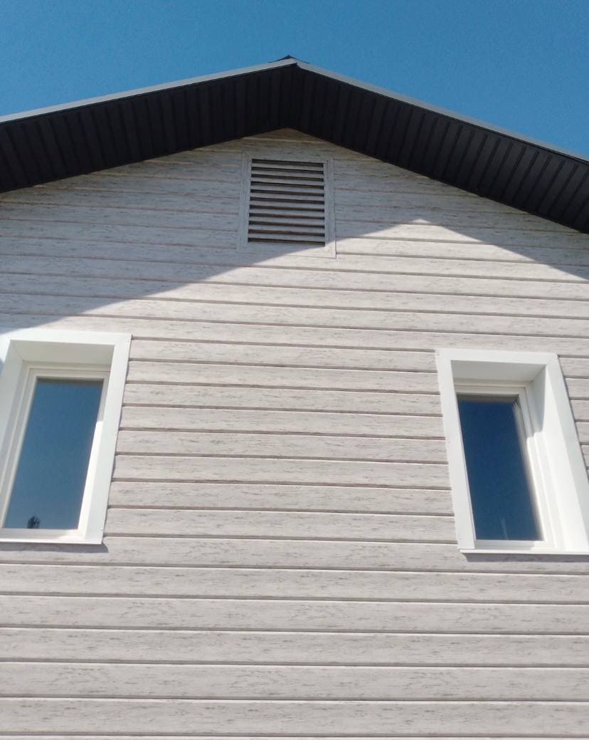 Отделка фасада дома металлическим сайдингом ЕВРО-БРУС Установка ламелей Еврожалюзи на слуховое окно