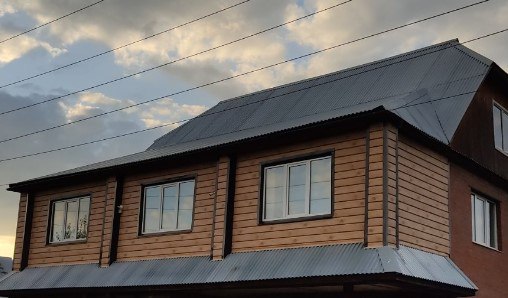 Отделка фасада дома металлическим сайдингом ЕВРО-БРУС