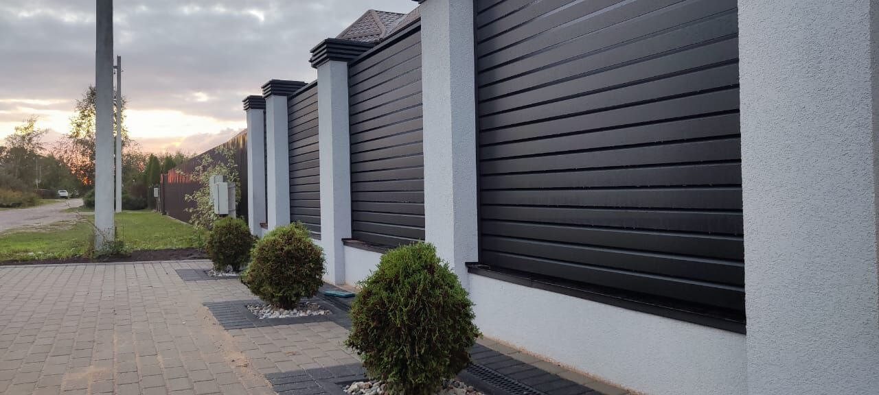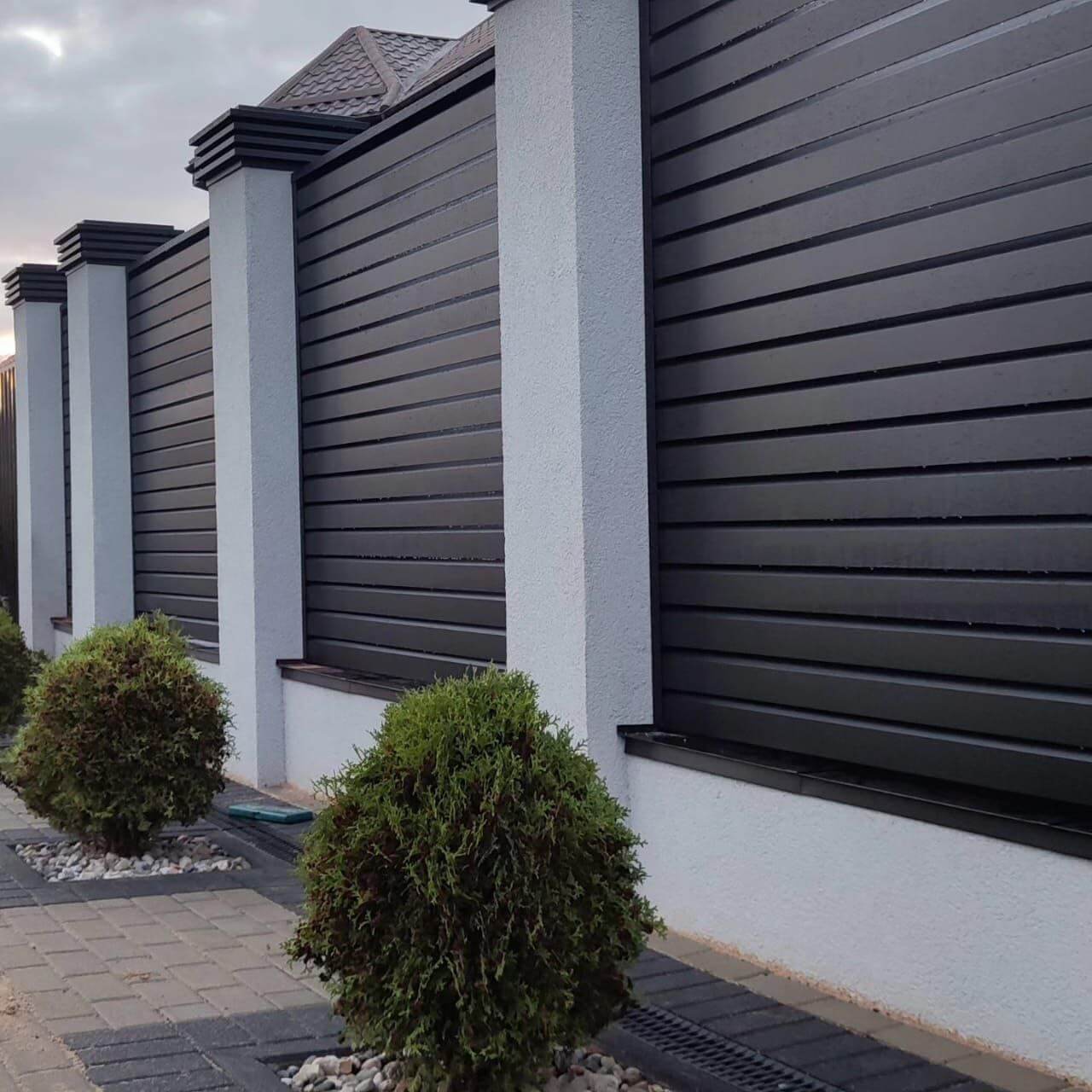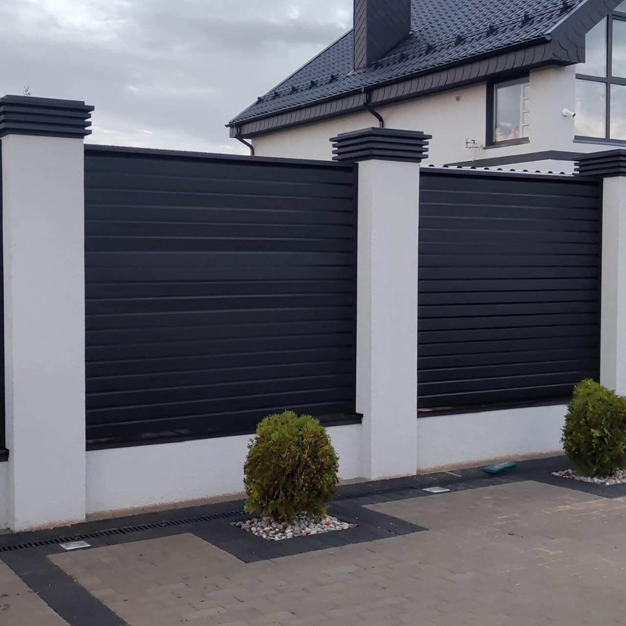 ✅ Вид секции: забор-жалюзи ✅ Профиль металлических ламелей: хай-тек ✅ Цвет и покрытие: RAL9005/9005 Черный двусторонний МАТТЕ