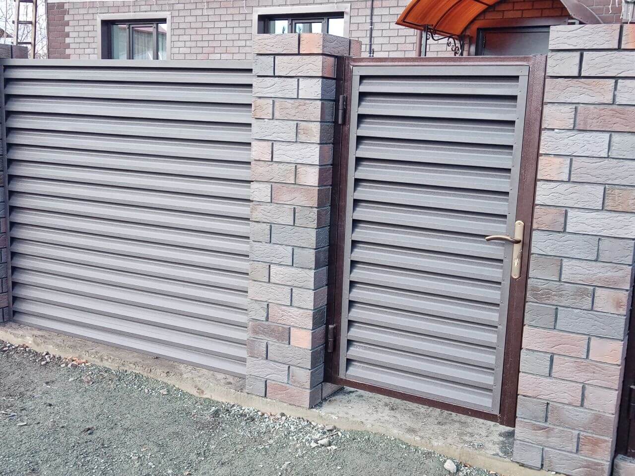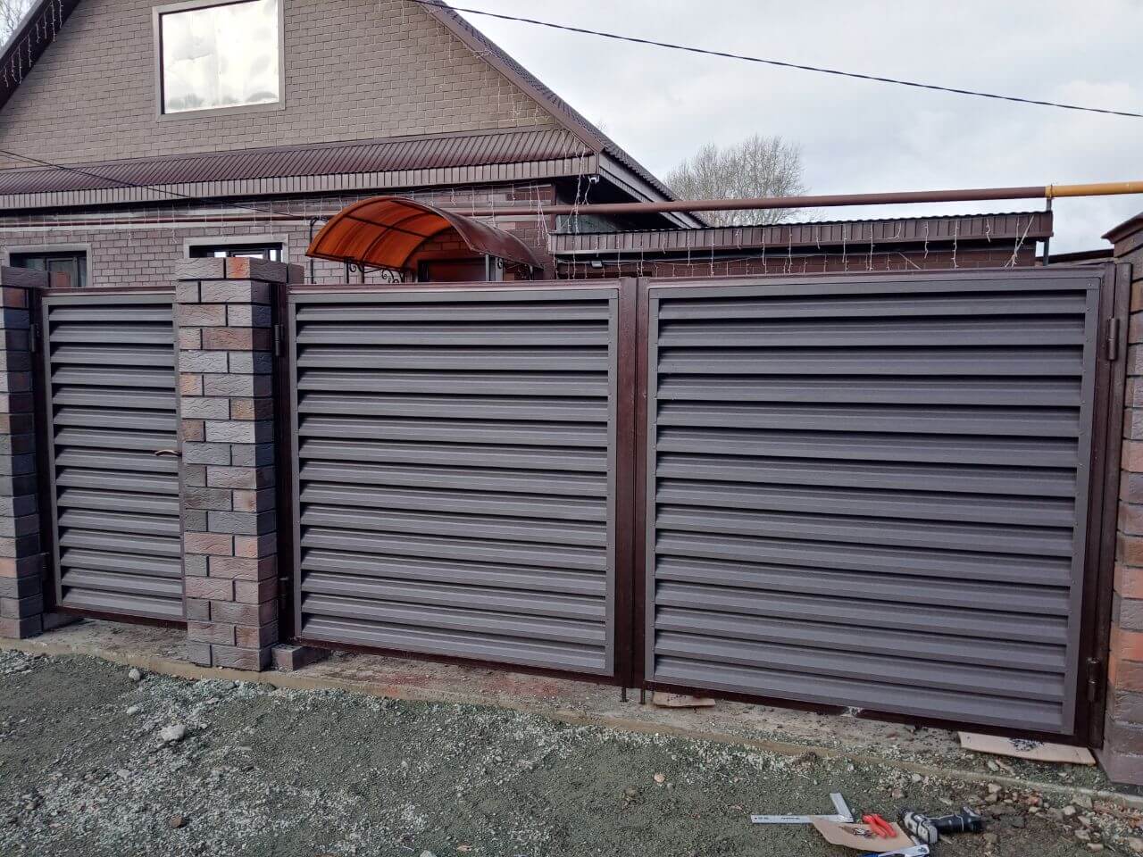 ✅ Вид секции: забор-жалюзи ✅ Профиль металлических ламелей: ЭКО-Z-US (усиленные) ✅ Цвет и покрытие: RAL8019/8019 Темный Шоколад двусторонний МАТТЕ
