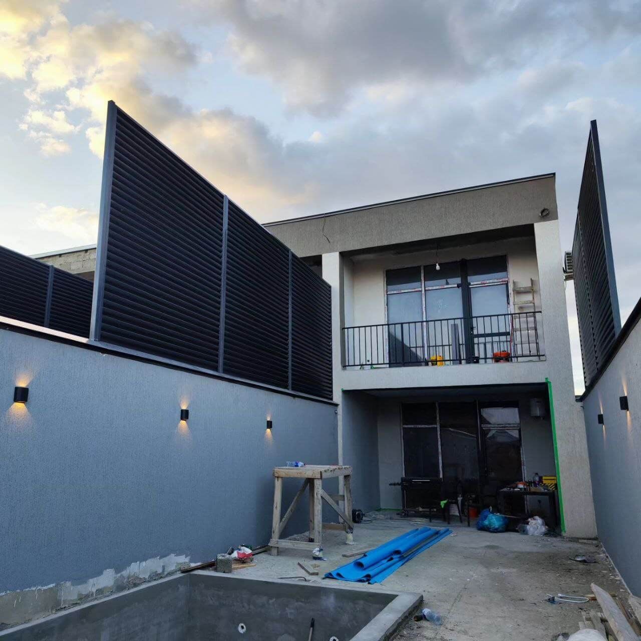 Ламель Еврожалюзи RAL7024/7024 Серый Графит 2-х сторонняя для заборов-жалюзи, беседок, пергол Секция забора жалюзи RAL7024/7024 Серый Графит 2-х сторонняя с кирпичными столбами анфас Секция забора жалюзи RAL7024/7024 Серый Графит 2-х сторонняя с кирпичными столбами Секция забора жалюзи RAL7024/7024 Серый Графит 2-х сторонняя с металлическими столбами анфас Секция забора жалюзи RAL7024/7024 Серый Графит 2-х сторонняя с металлическими столбами