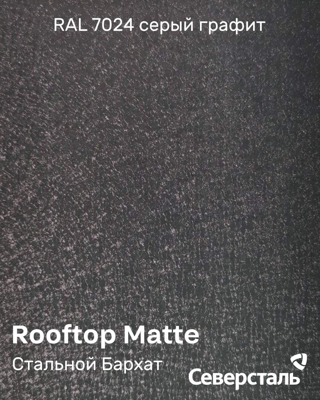 Металлочерепица Rooftop Matte Стальной Бархат в Барнауле - полный каталог и палитра доступных цветов металлочерепицы Монтеррей, Каскад, Банга, Арарат, Геркулес, Геркулес модульный с покрытием Rooftop Matte (Стальной Бархат) производства Северсталь для кровли крыши в Барнауле.